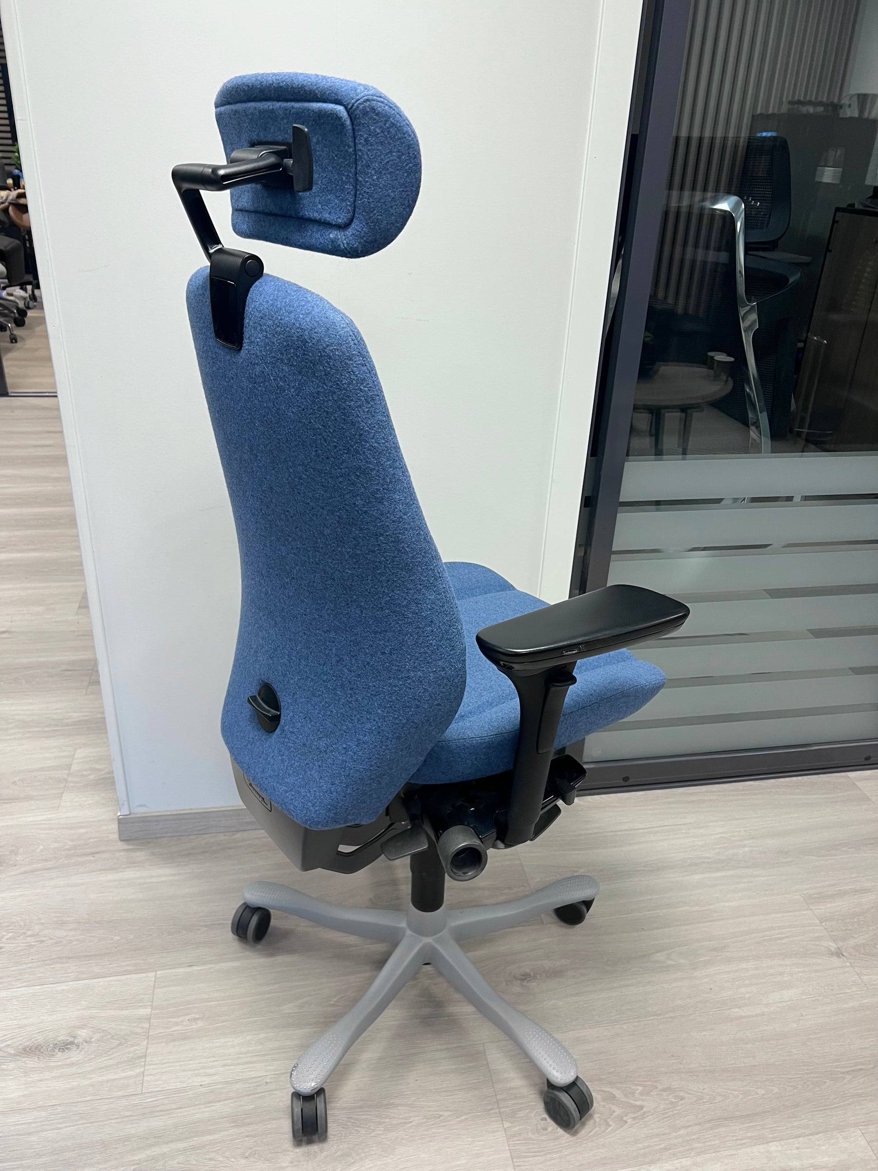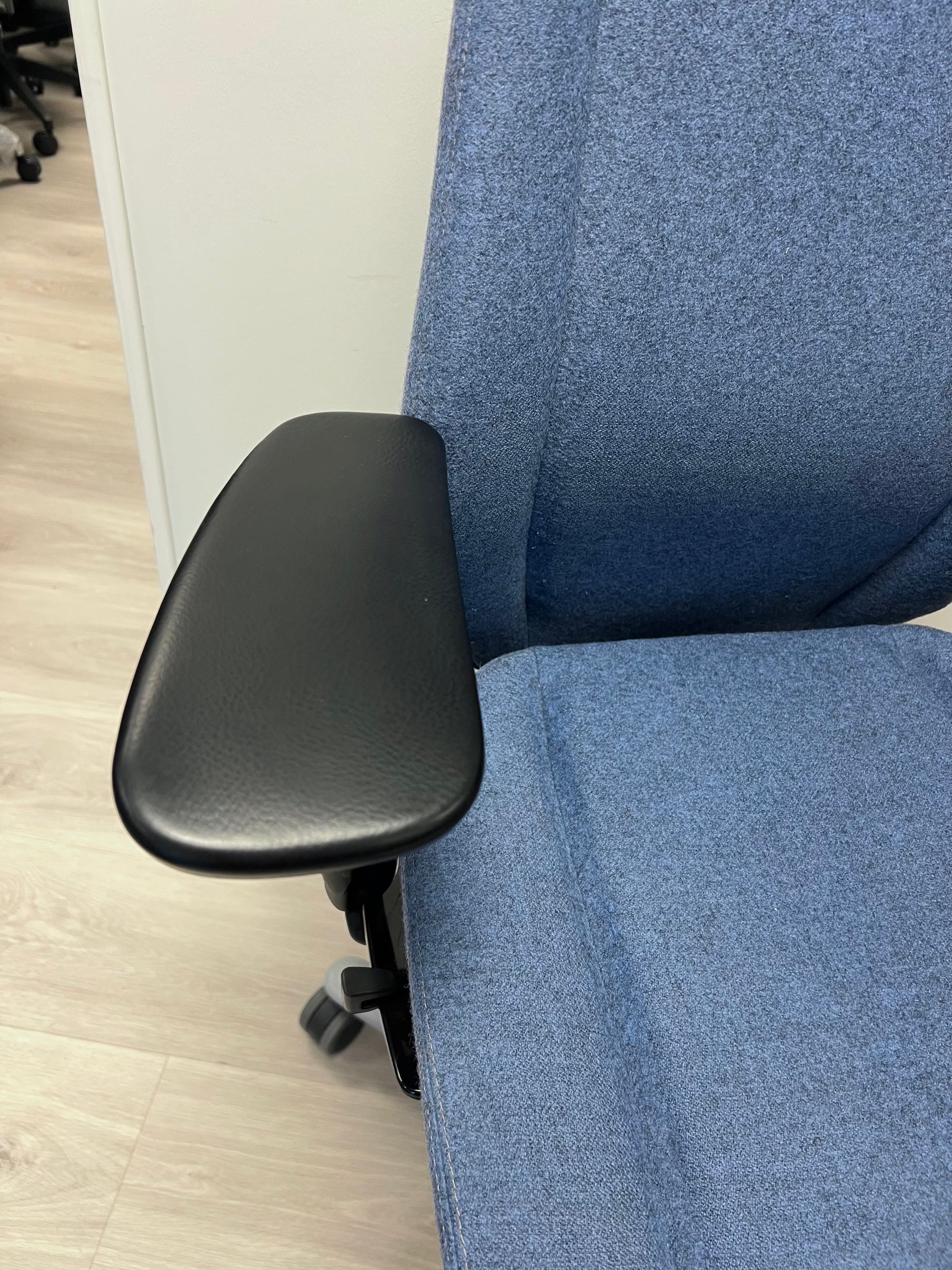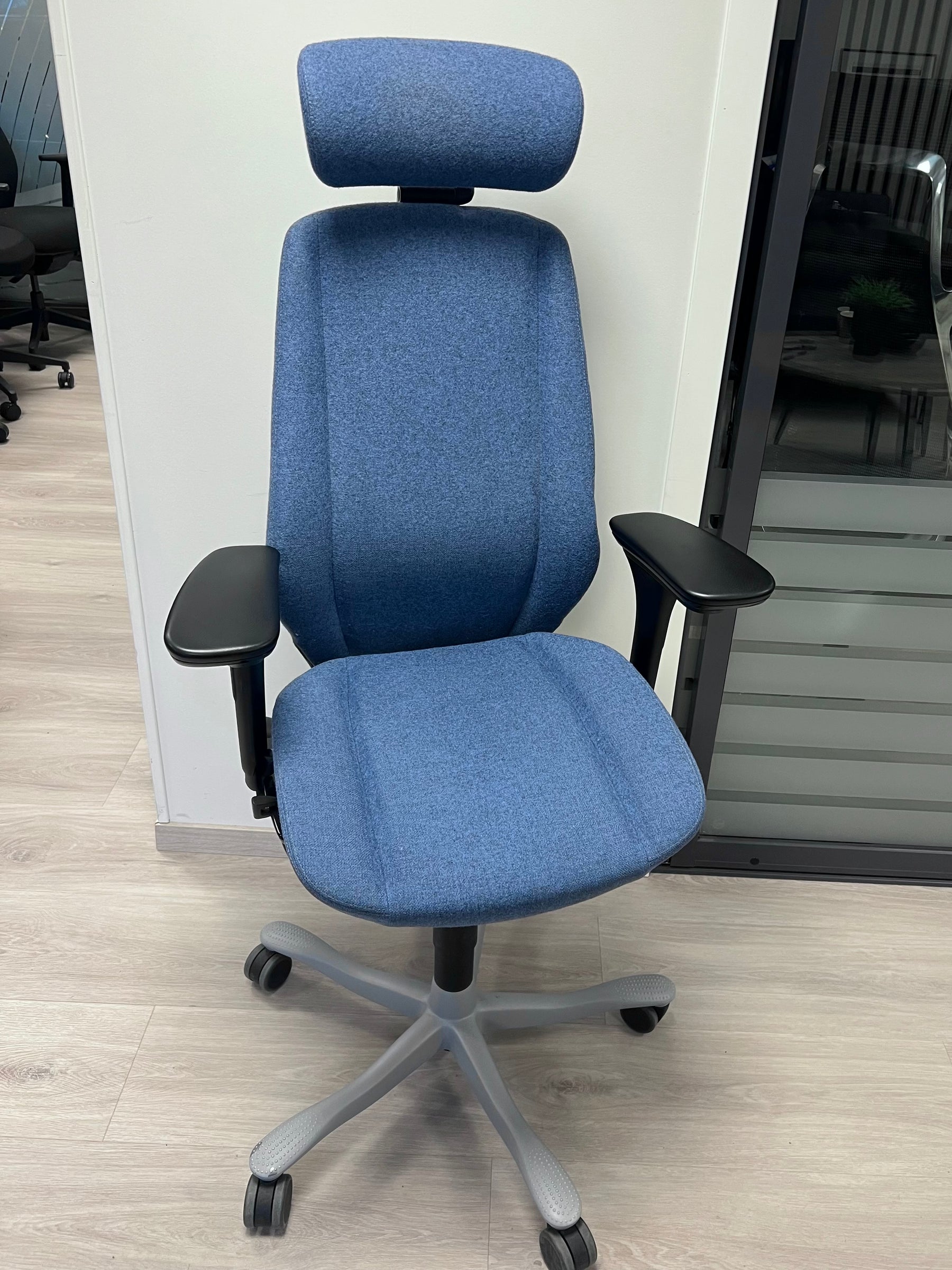 Kontorstolen har alt og fremstår som nesten ubrukt i stoffet med pent brukte armlener. Perfekt ergonomisk kontorstol for både hjemmekontor og ethvert kontorlandskap.
