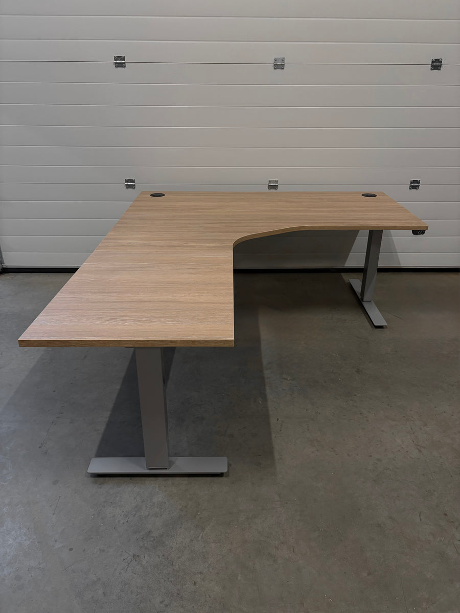 BRUKT | ELEKTRISK HEV/SENK HJØRNE-SKRIVEBORD 3 BEINS LYSGRÅ
