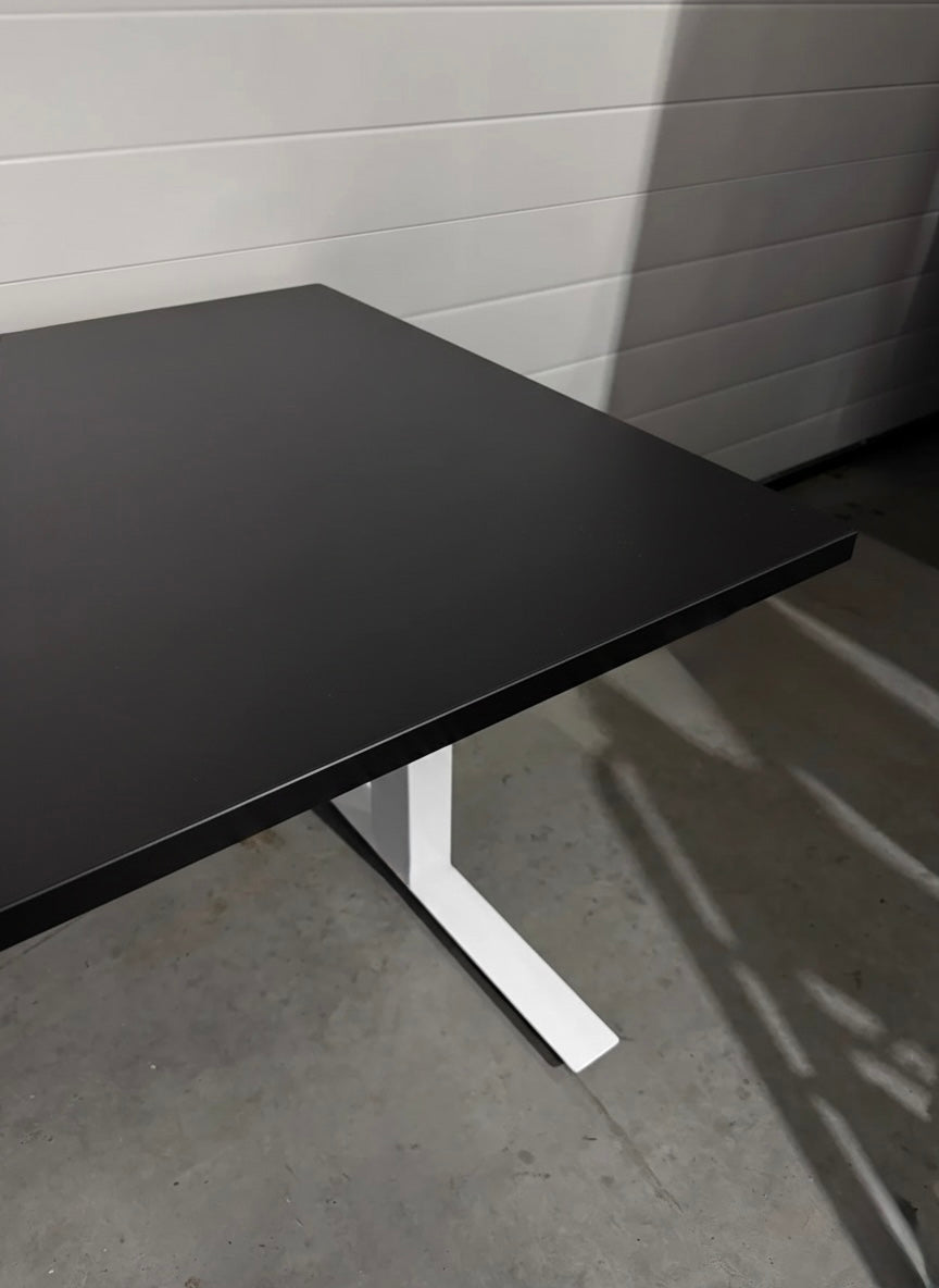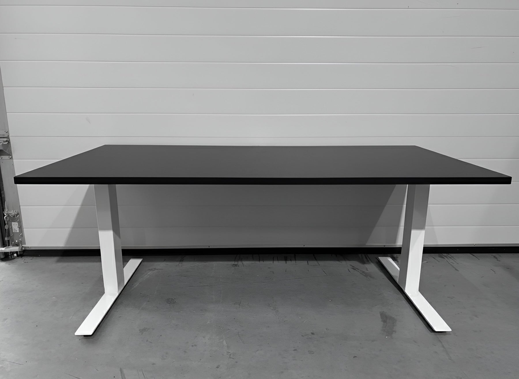 Moderne design med krystall hvit understell med svart matte bordplate. T-beinene er faste og ikke justerbare i høyde, men gir deg en stabil og robust konstruksjon som tåler bruk i mange år videre. Skrivebordet passer derfor til alle kontor og hjemmekontor for høy ergonomisk klasse med et moderne preg.