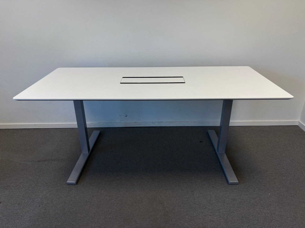 Bordplate i hvit og understell i gråtoner gjør at det enkelt passer inn i alle miljøer og aldri går av mote. Møtebordet en ideell løsning for møterom og konferanseområder. Bestill dette møtebordet for å forbedre komfort under møter, presentasjoner og strategiske diskusjoner.