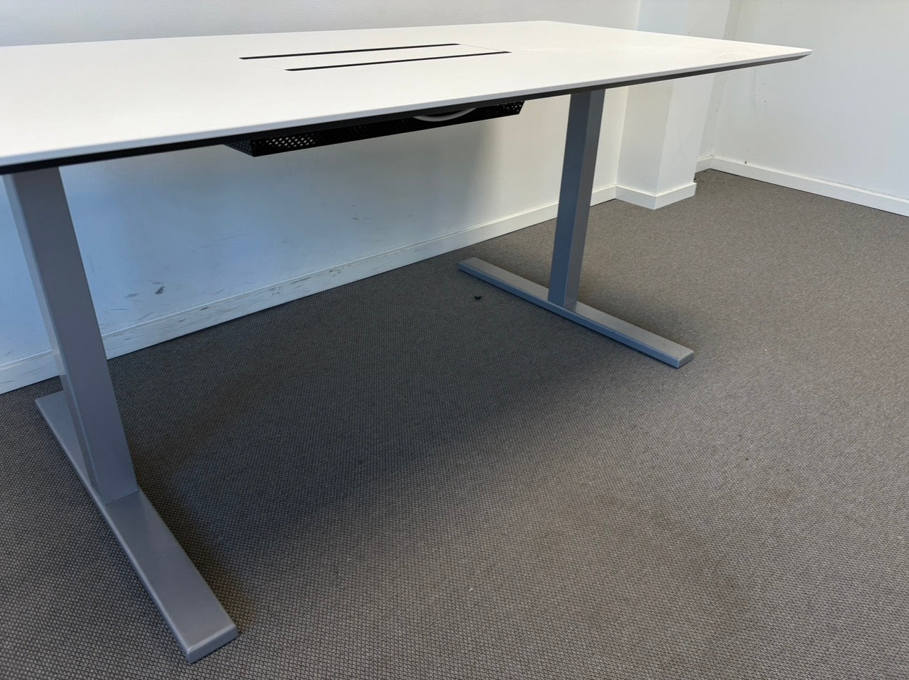 Kommer med robuste og tynne T-bein for bedre beinplass og påkostet kabelluke med dobbel åpning ned til kabelkurv under bordet. Dette skaper et profesjonelt utseende og en effektiv tilgang til strøm.