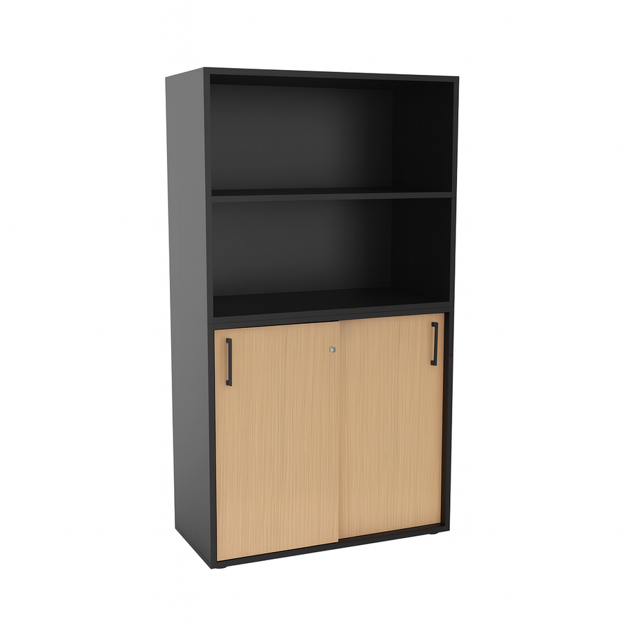 NYTT | SKYVEDØRSKAP MED OVERHYLLER DESIGNET I LYS EIK/SVART