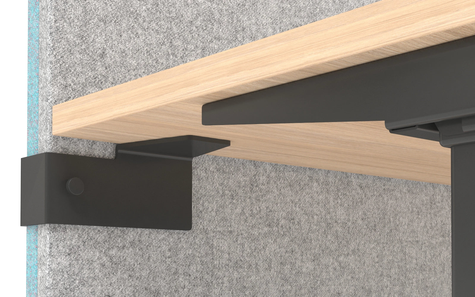 Enkel montering med robuste fester som settes i bordplaten på skrivebordet. Passer sømløst i bakkant til 160 cm skrivebord, se andre størrelser i kategorien for bordskillevegger her.