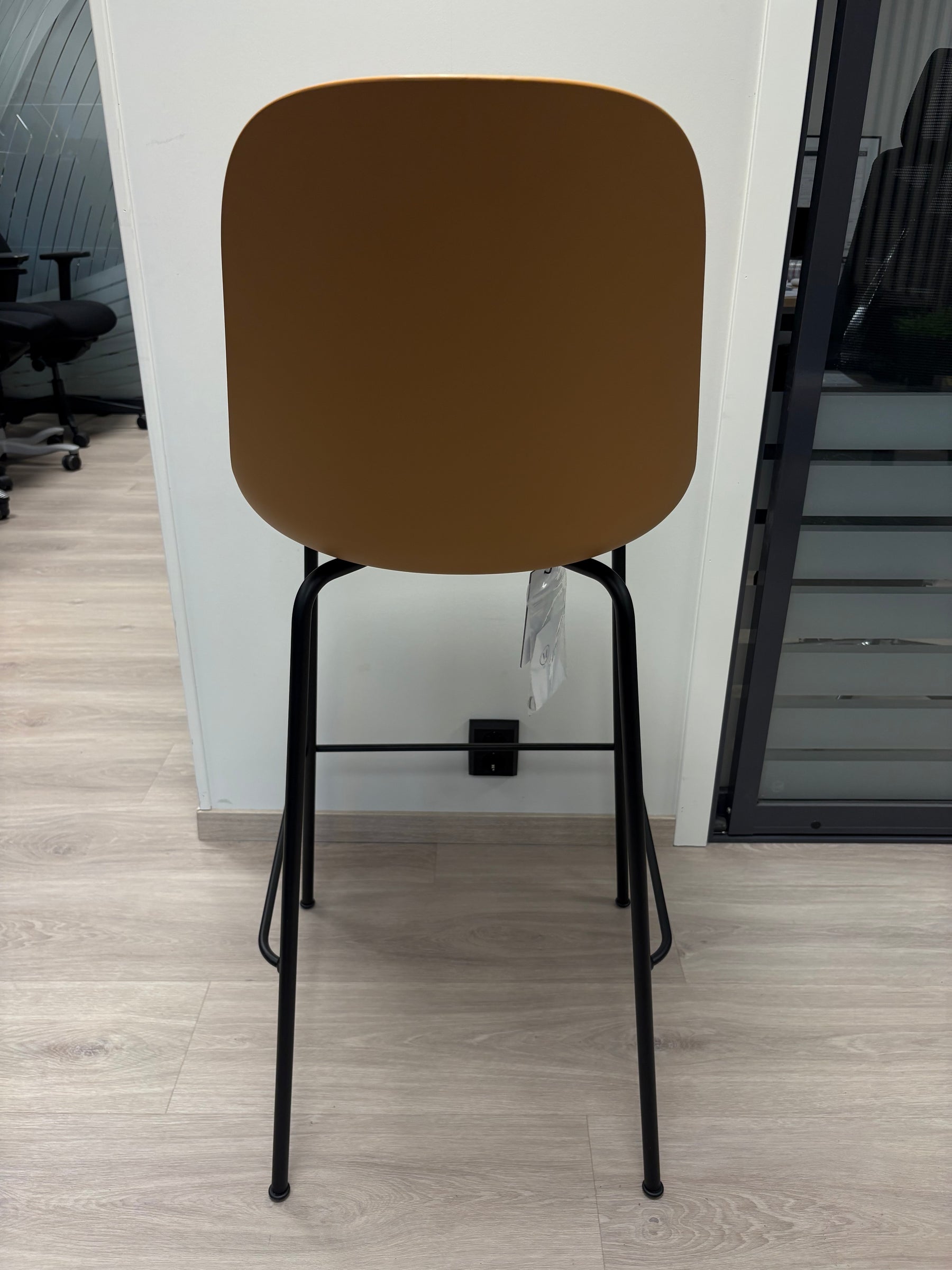 Den varme khaki‑fargen tilfører ro og harmoni til rommet, samtidig som den gjør stolen egnet som interiørdetalj som harmonerer med både treverk, stål og naturlig tekstil. Barstolen passer derfor perfekt inn i alle miljøer.