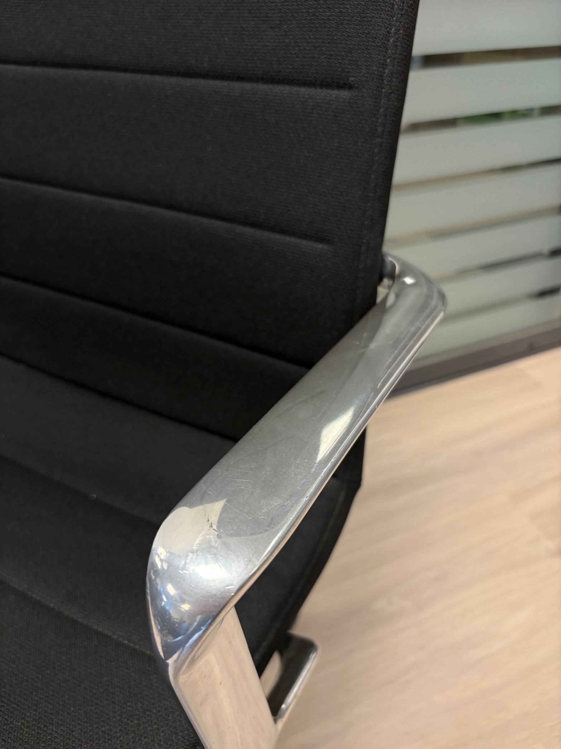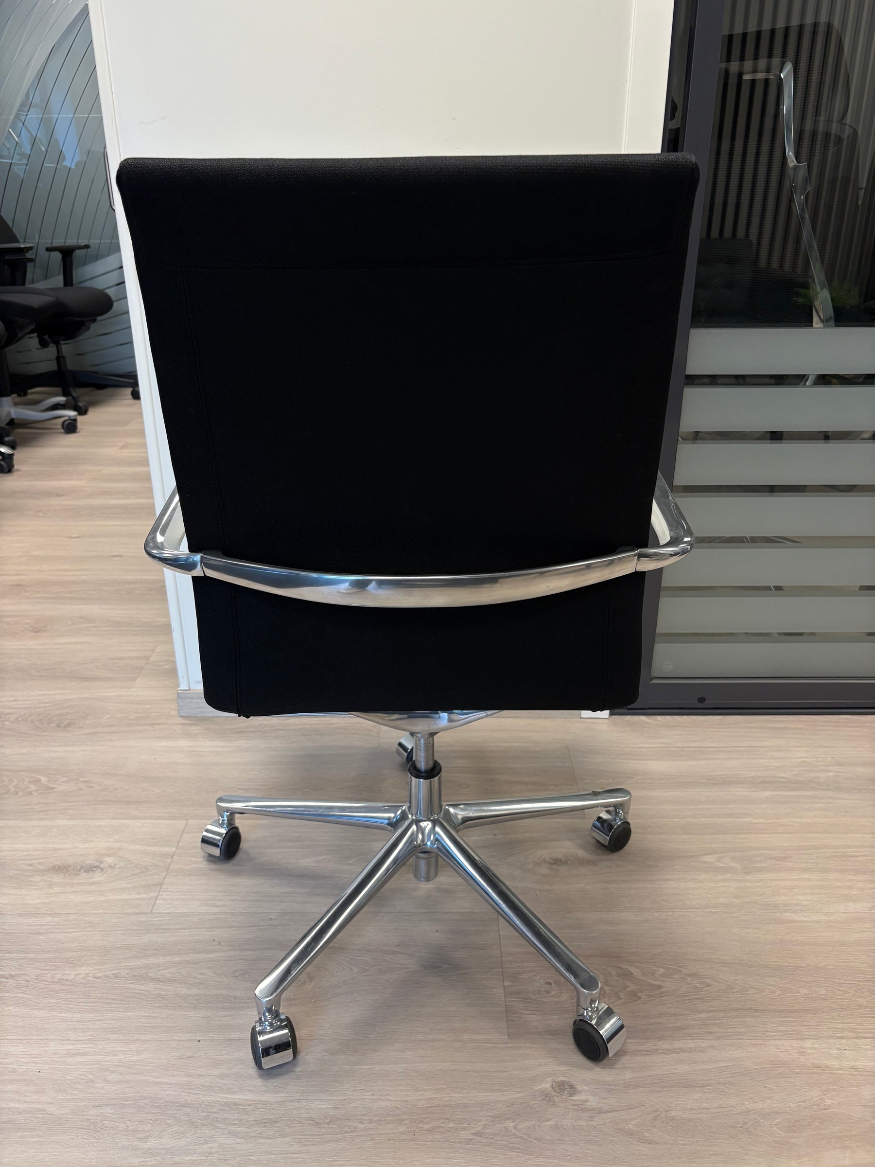 Kommer i svart slitesterkt stoff med armlener og base i krom. I tillegg til slitesterke hjul med overbeskyttelse.